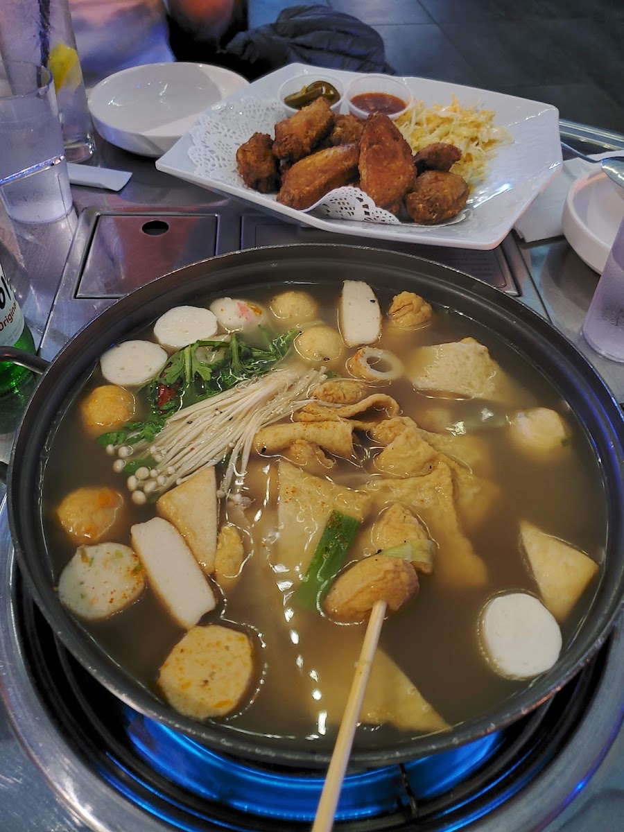 Solid spot for a Korean pocha type of vibe. Beer, soju, and lots of Korean bar foods like fried chicken, spicy wings, sizzling plates of gopchang, spicy octopus, pork and tofu, etc. while sitting on these canister stools. This place gets packed on the weekends but it was pretty empty on a Thursday night which was great since our party gets loud and obnoxious. Service was good, the waiters were able to keep us stocked as more of our friends arrived and we needed to order more drinks. They do have a small parking lot that is valet only if you don't want to look for street parking.