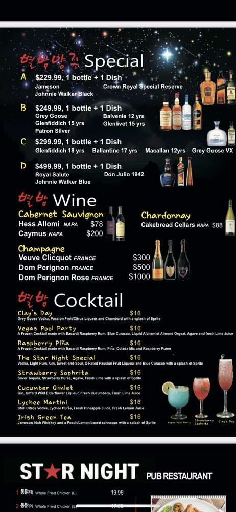Star Night Menu